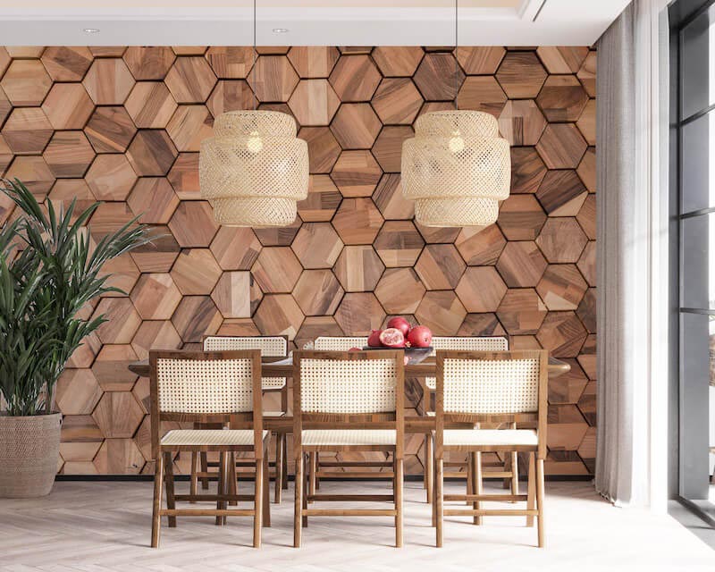 Informazioni Sul Nostro Carta Da Parati Esagono L'Armonia Del Legno
