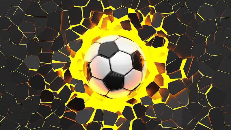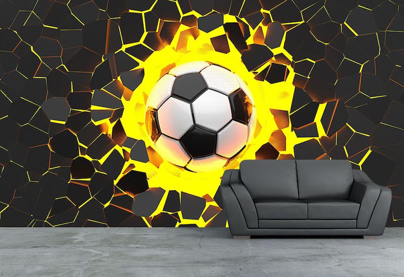 Questa carta da parati raffigura un pallone da calcio in primo piano che sembra emergere dalla superficie creando un forte effetto tridimensionale. La composizione è centrata e dinamica con dettagli realistici che aumentano la profondità visiva. I colori contrastanti tra bianco e nero si fondono con sfondi intensi creando energia visiva. L'atmosfera è vivace e coinvolgente evocando movimento e passione sportiva. Perfetta per camere ragazzi, soggiorni moderni o spazi sportivi questa carta da parati trasforma la parete in un elemento decorativo potente e dinamico.